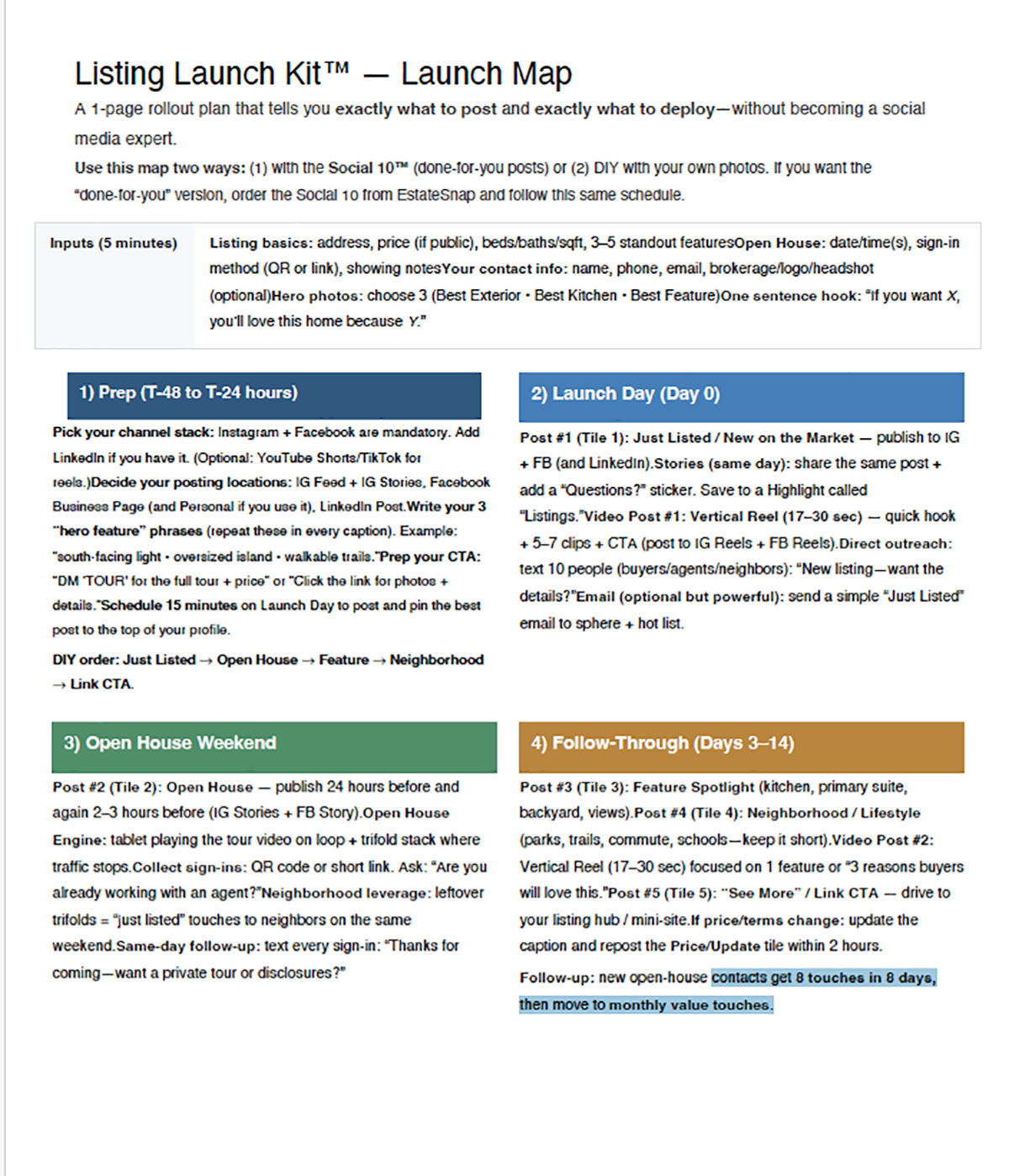 If you want consistent posting, premium open house presentation, and more touches—without more work—the Listing Launch Kit™ is built for you.