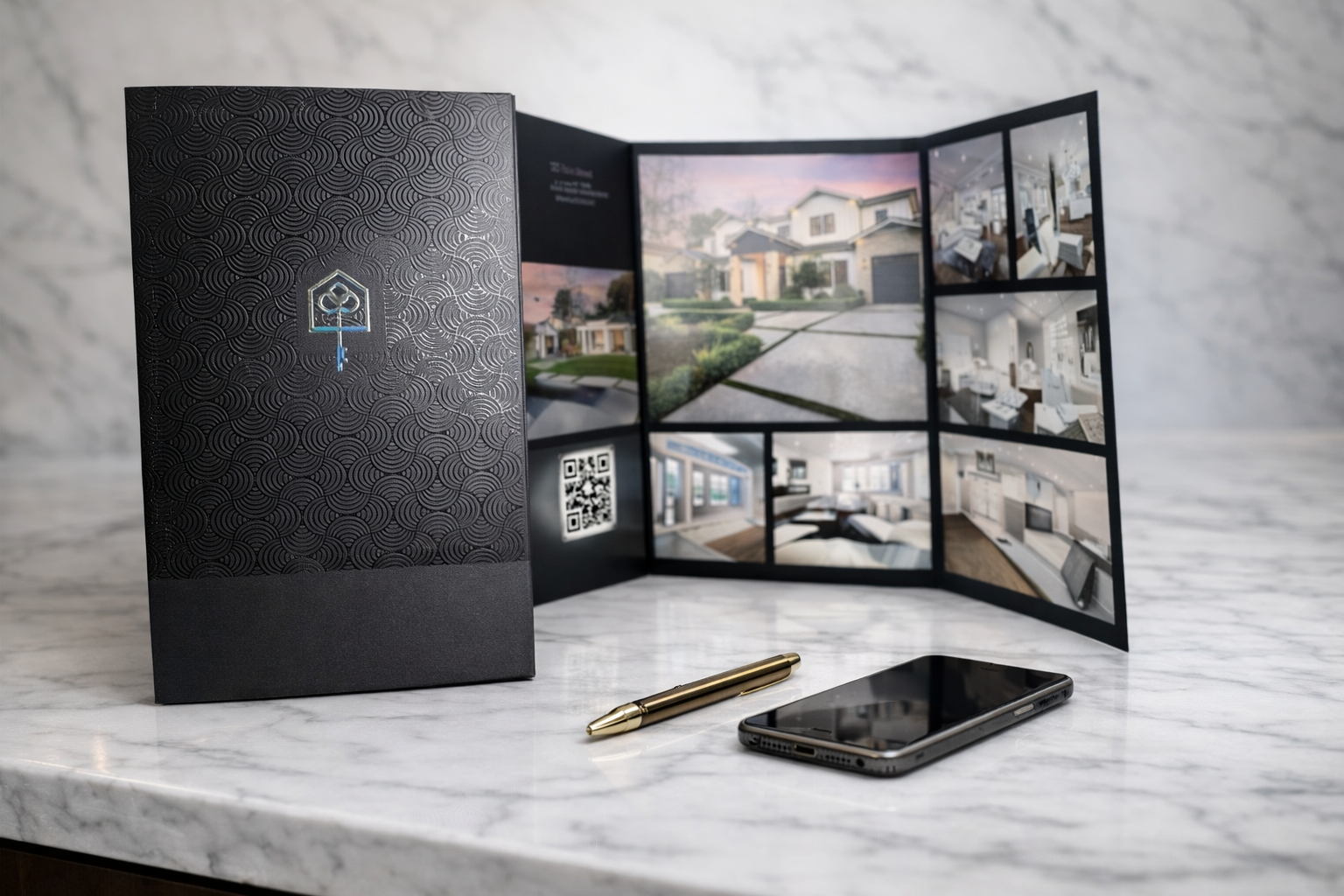 This isn’t a cheap flyer. It’s a premium, varnish-finish Signature Listing Portfolio piece that raises the bar at your open house—and gives visitors something they’ll actually want to take home.