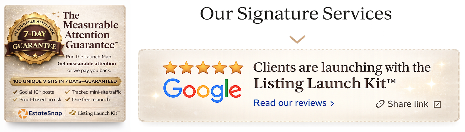 Next step: Order the Listing Launch Kit™ and we’ll deliver a complete, client-ready launch.